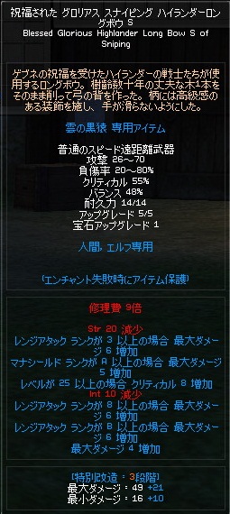 青い改造石は最大 最小が上がるのでガスト産一級のハイランダーロングボウに使ってみることにしました